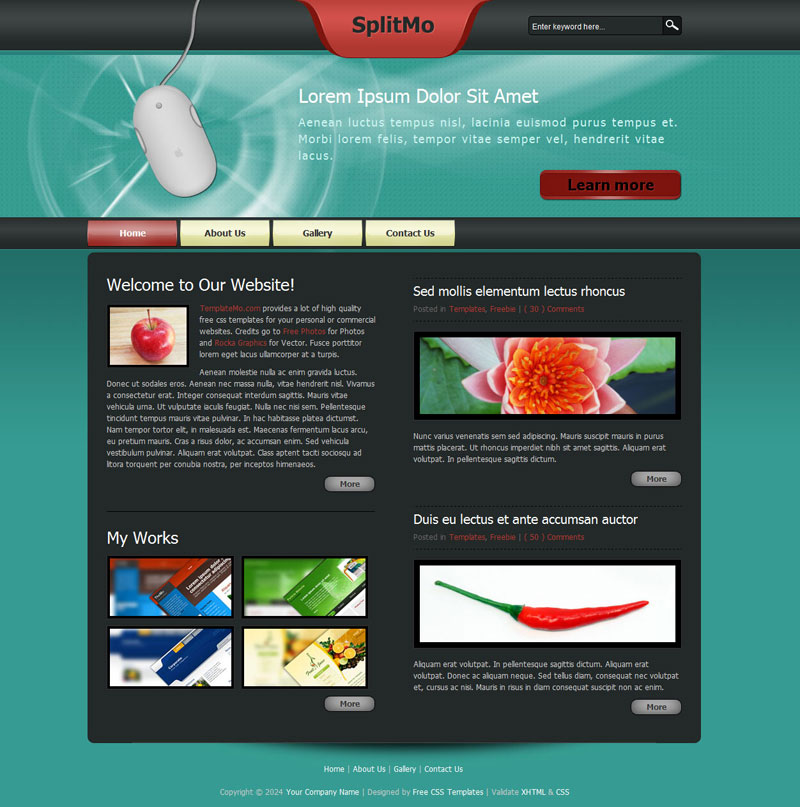 Lorem ipsum dolor sit amet, consectetur adipiscing elit. Proin eget tortor at justo congue pulvinar at id risus. Quisque accumsan dolor eget justo tincidunt imperdiet varius et nisl. Validate XHTML & CSS.